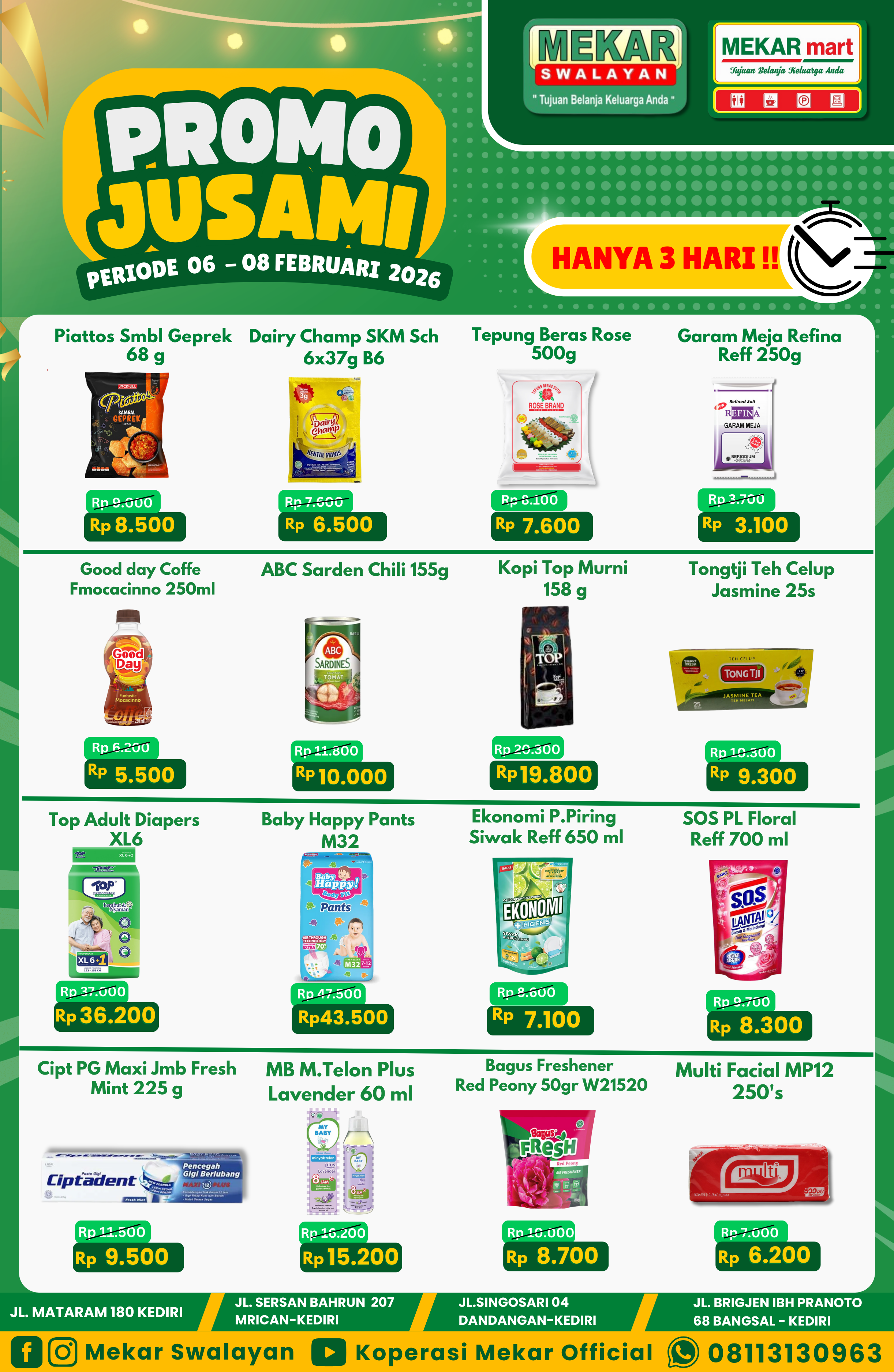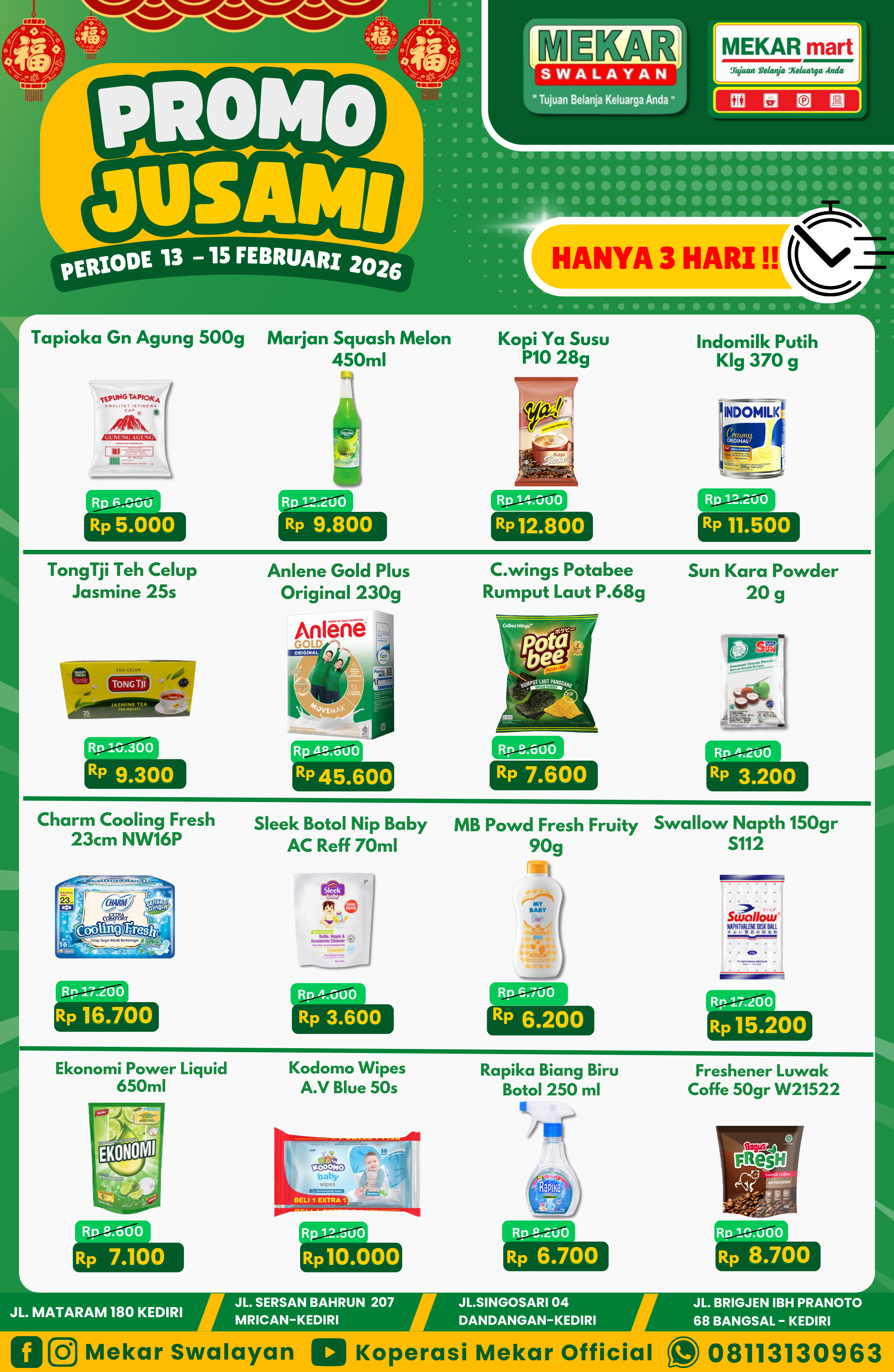 ✨PROMO JUSAMI✨MEKAR SWALAYAN , MEKAR MART DAN CORNER POINT13 – 15 FEBRUARI 2026..Yuk kak segera kunjungi Mekar Swalayan , Mekar Mart & Corner Point karena banyak sekali promo-promo menarik setiap harinya.Borong promo JUSAMI berlangsung...