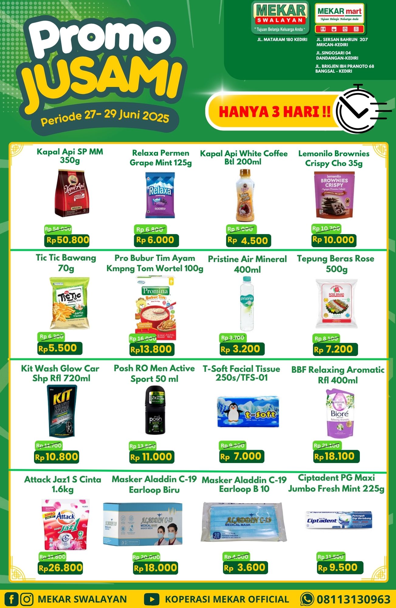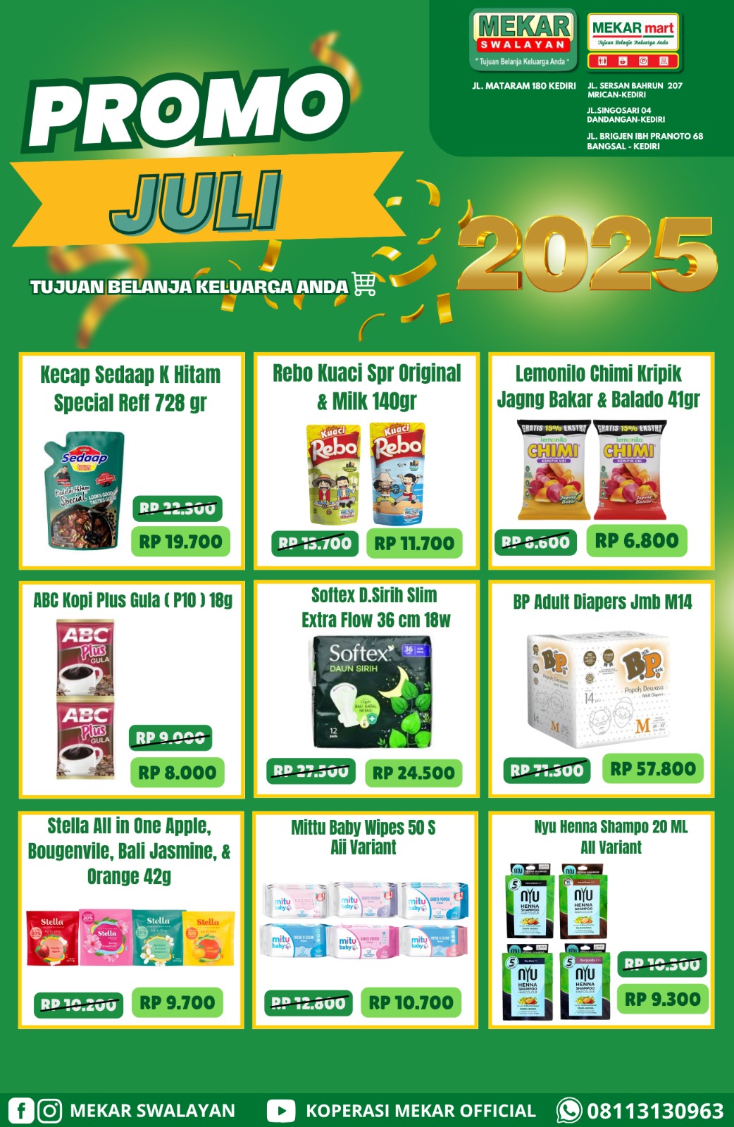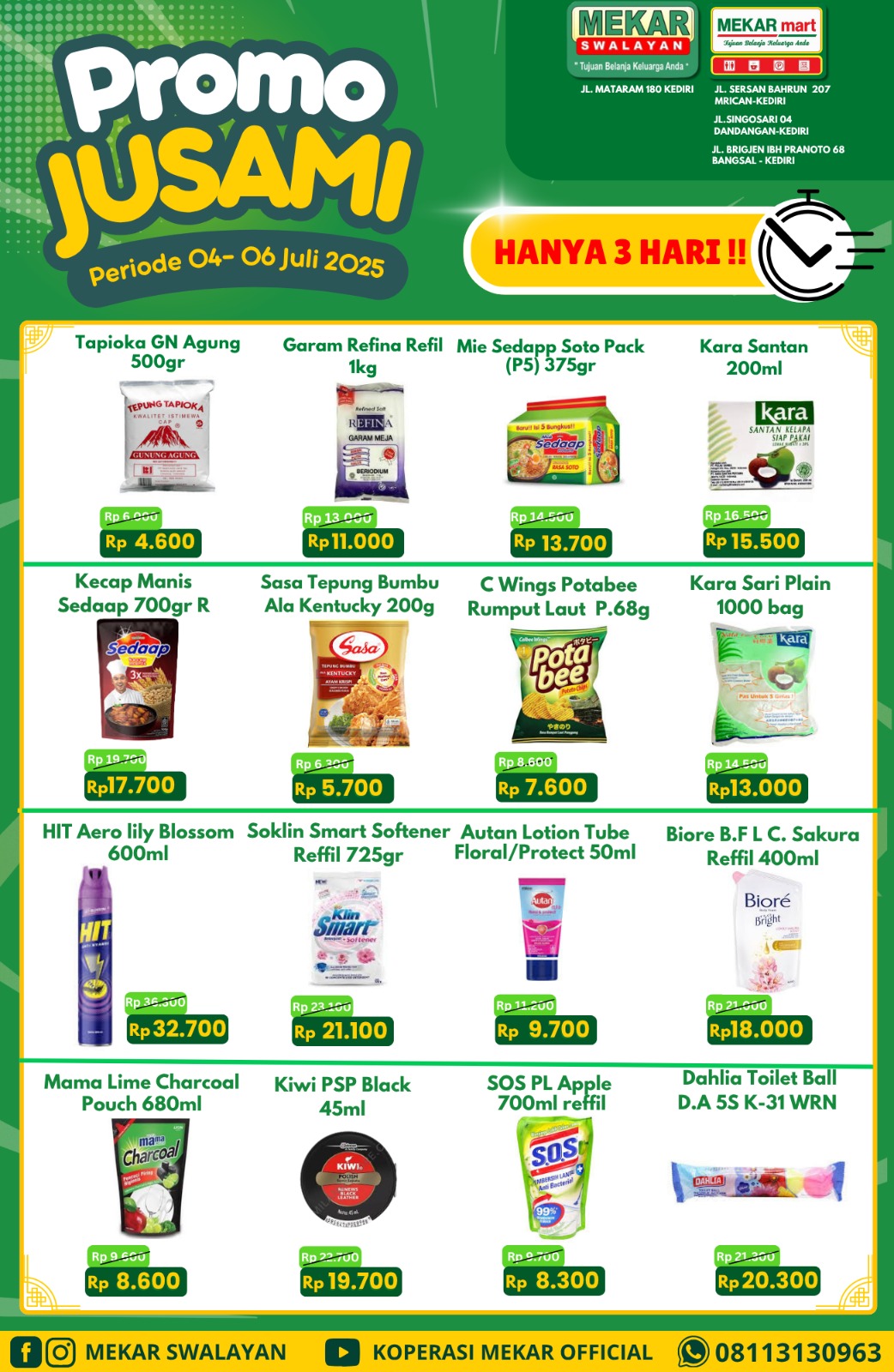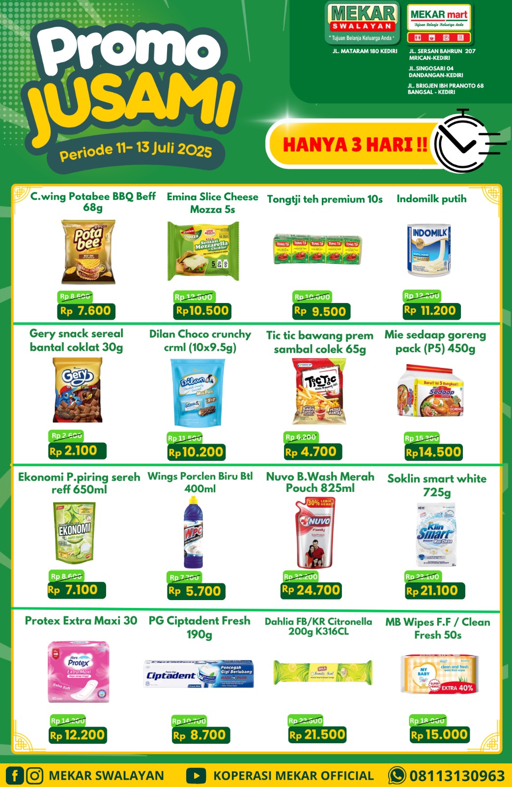 PROMO JUSAMI✨MEKAR SWALAYAN , MEKAR MART DAN CORNER POINT 11-13 JULI 2025..Yuk kak segera kunjungi Mekar Swalayan , Mekar Mart & Corner Point karena banyak sekali promo-promo menarik setiap harinya.Borong promo JUSAMI berlangsung mulai...