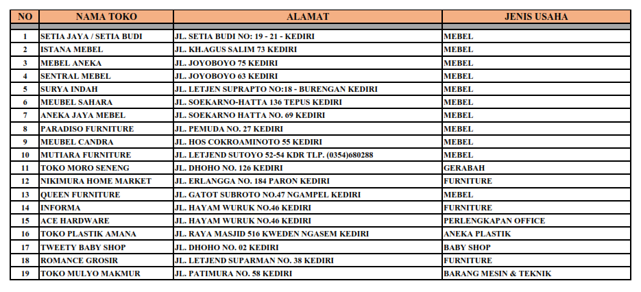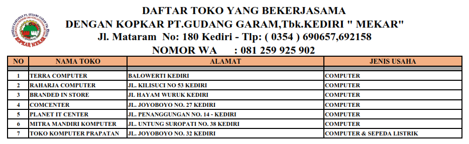 DAFTAR MITRA KERJA oleh Eka Mei Cahyantoro · Dipublikasikan 11 Oktober 2024 · Di update 23 Juli 2025 Share