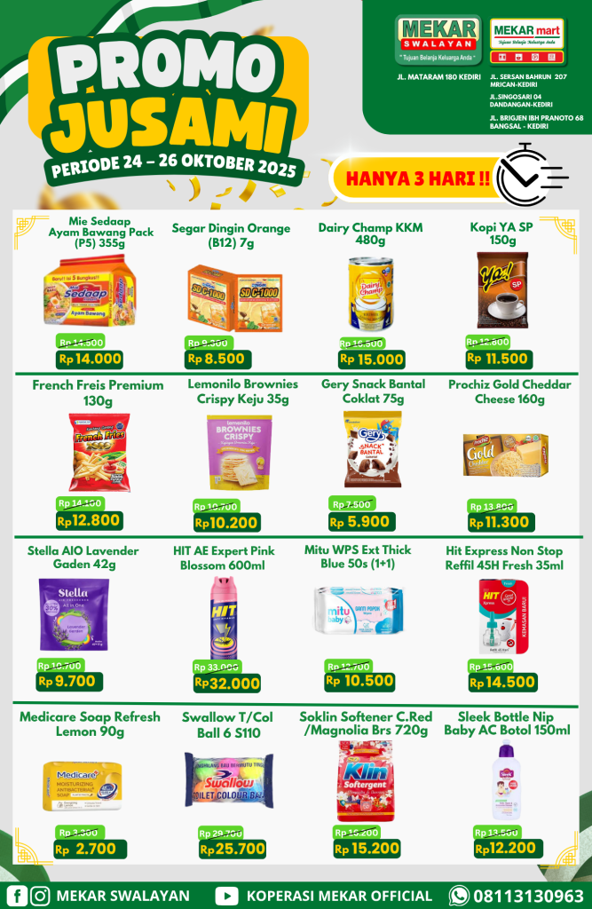 Borong promo JUSAMI berlangsung mulai hari Jumat 24 OKTOBER 2025 sampai dengan hari Minggu tanggal 26 OKTOBER 2025.