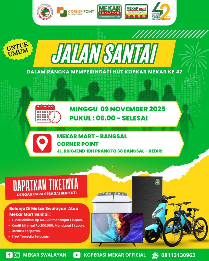 Jangan lewatkan bagi Anda yang sudah mempunyai tiket Jalan Santai bersama Kopkar "MEKAR"