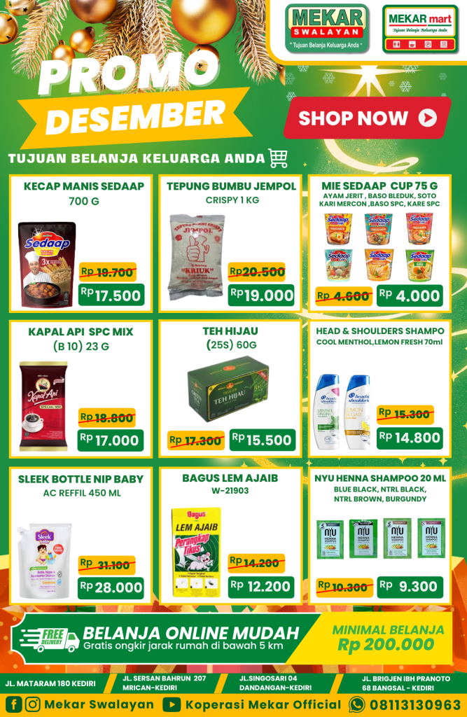 Yuk belanja di Mekar Swalayan, Mekar Mart, & Corner Point.