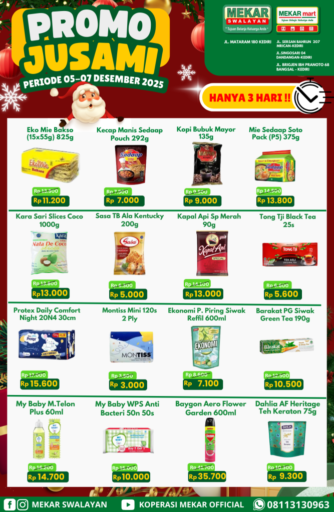 Borong promo JUSAMI berlangsung mulai hari Jumat 05 DESEMBER 2025 sampai dengan hari Minggu tanggal 07 DESEMBER 2025.