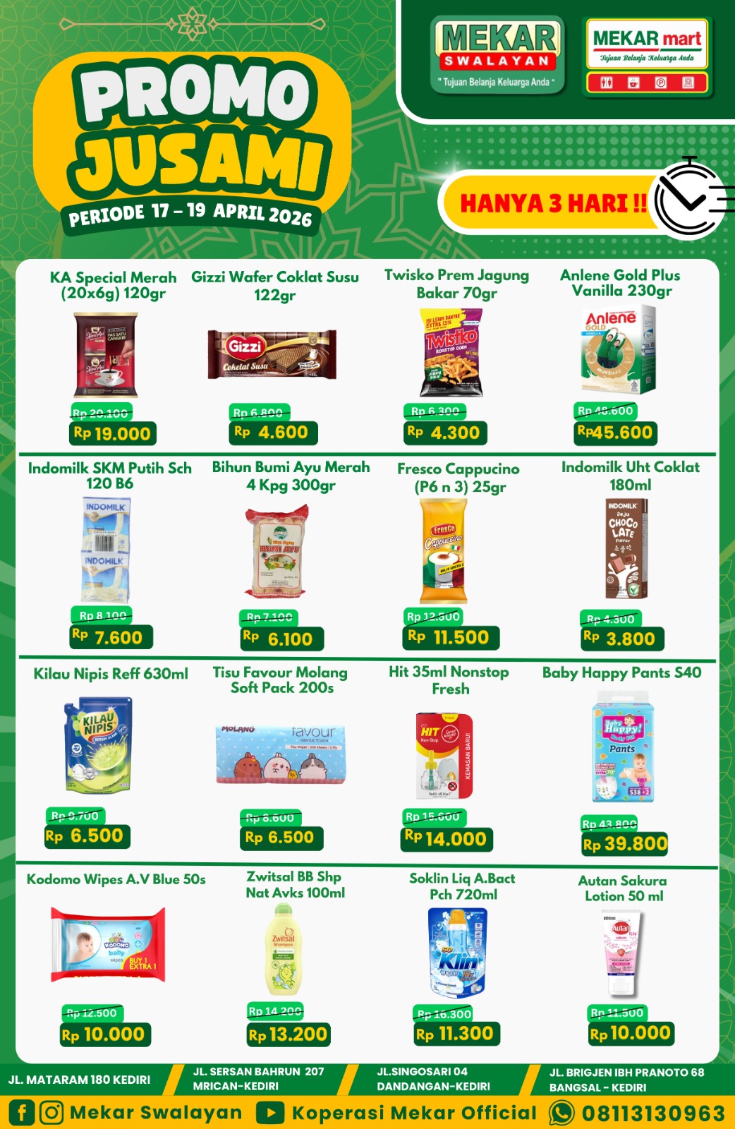 ✨PROMO JUSAMI✨MEKAR SWALAYAN , MEKAR MART DAN CORNER POINT 03 – 05 APRIL 2026..Yuk kak segera kunjungi Mekar Swalayan , Mekar Mart & Corner Point karena banyak sekali promo-promo menarik setiap harinya.Borong promo JUSAMI...